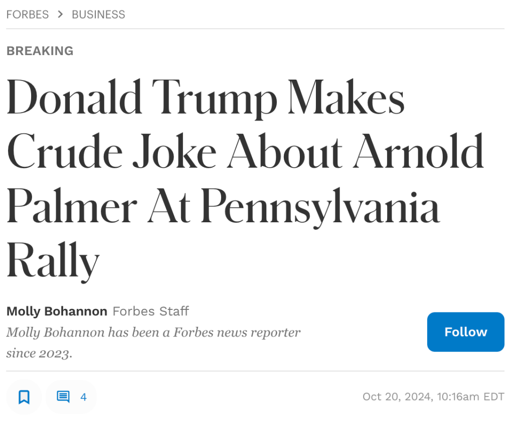 So, you know, I’ve been here before, and I told the story before. Not in this kind of detail because, you know, you have these teleprompters. If I would read it off a teleprompter, it wouldn’t be so good. Right? And it would be a lot shorter. It wouldn’t be as good. And I didn’t want to do that. I said, when I come here, I’m going to tell him the real story of Arnold.